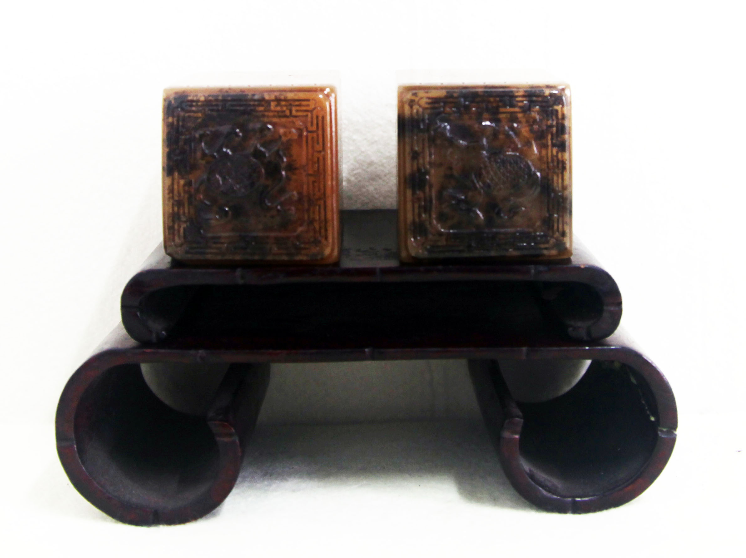 寿山黄冻石 雕乌鸦皮龙纹对方章