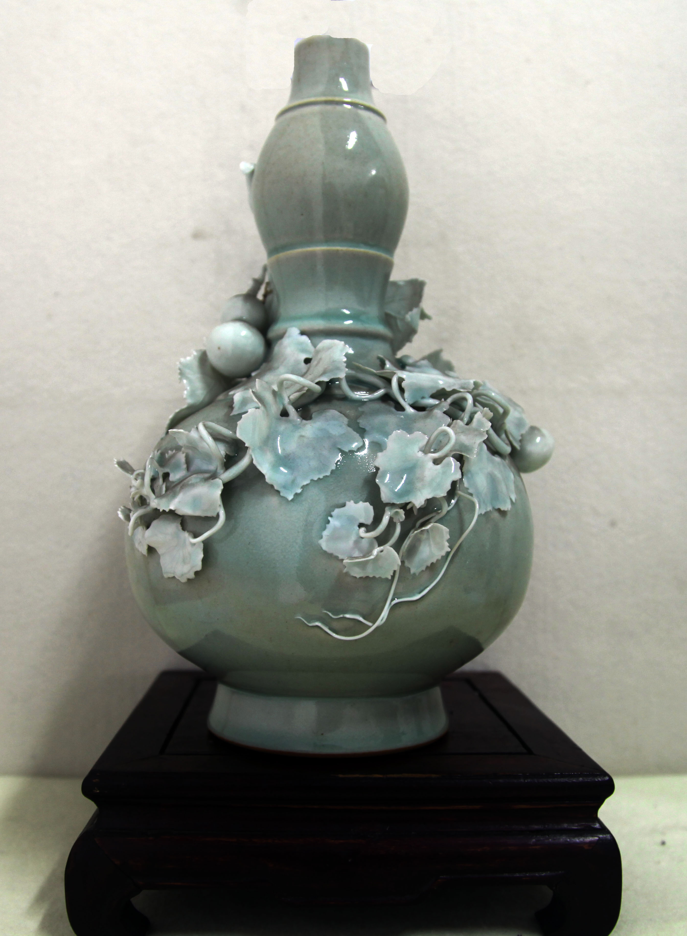 乾隆天青立体雕葫芦螳螂葫芦瓶