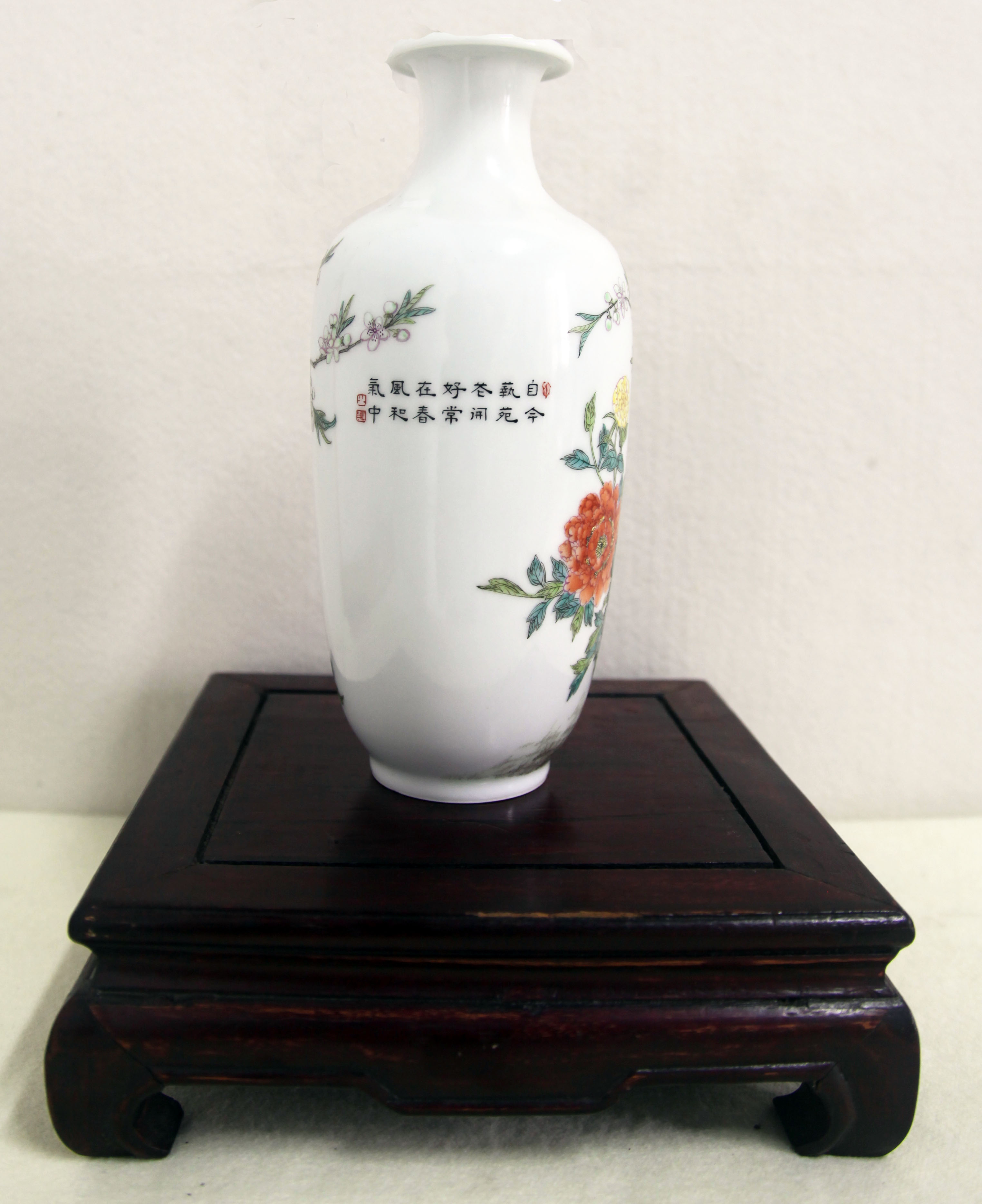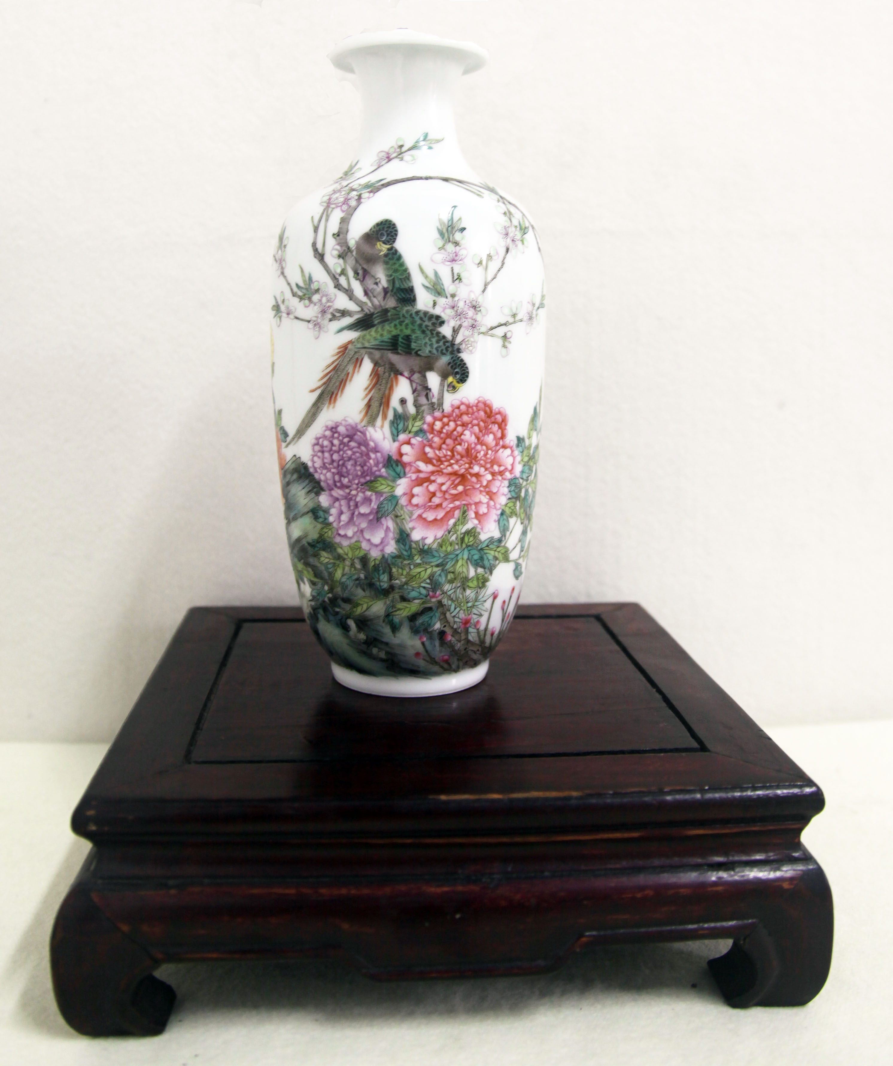 洪宪牡丹鹦鹉粉彩瓶